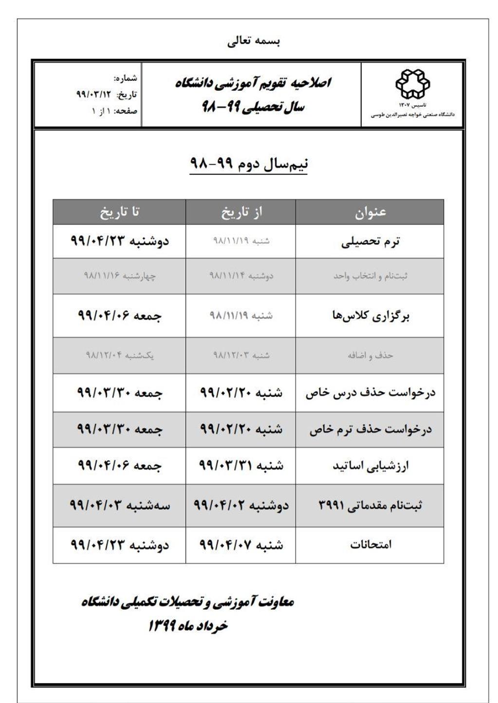 اصلاحیه تقویم آموزشی