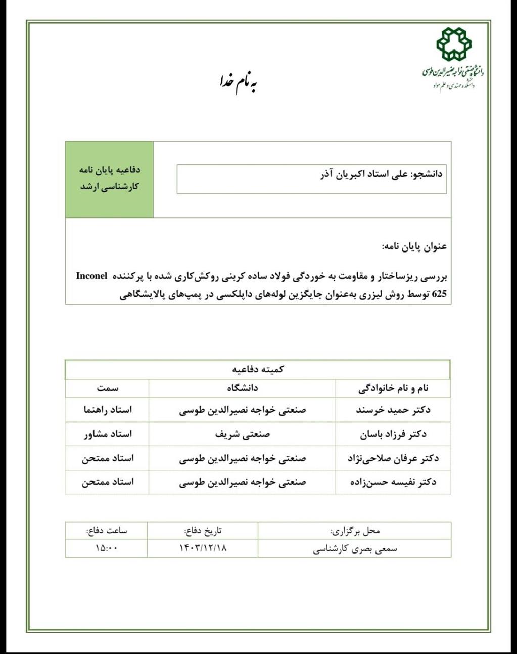 دانشجو: علی استاداکبریان آذر استاد راهنما: دکتر حمید خرسند