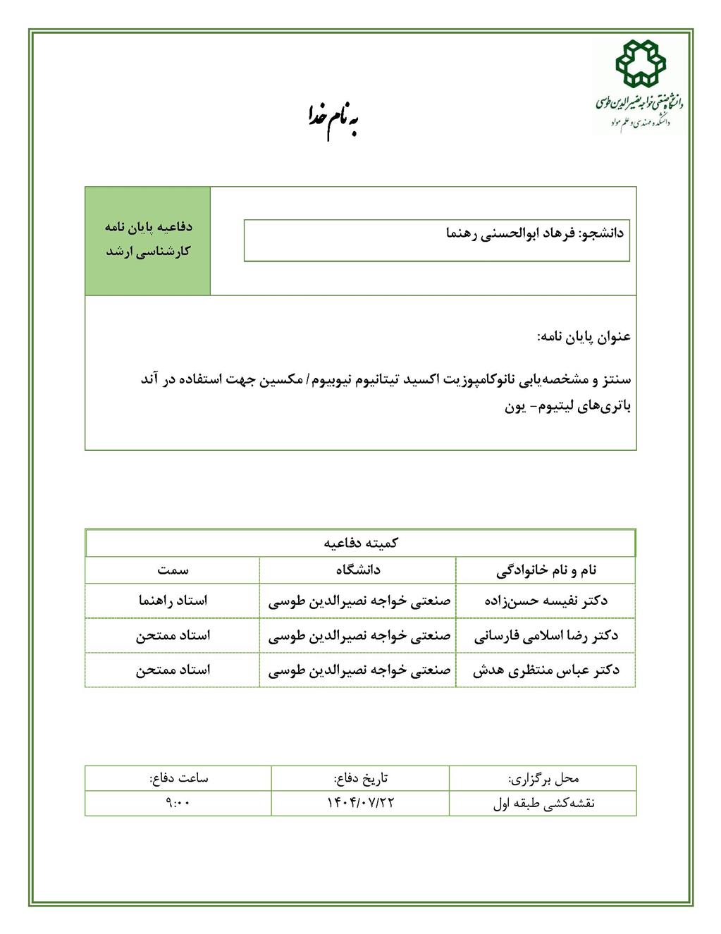 دانشجو:فرهاد ابوالحسنی رهنما استاد راهنما: دکتر نفیسه حسن زاده
