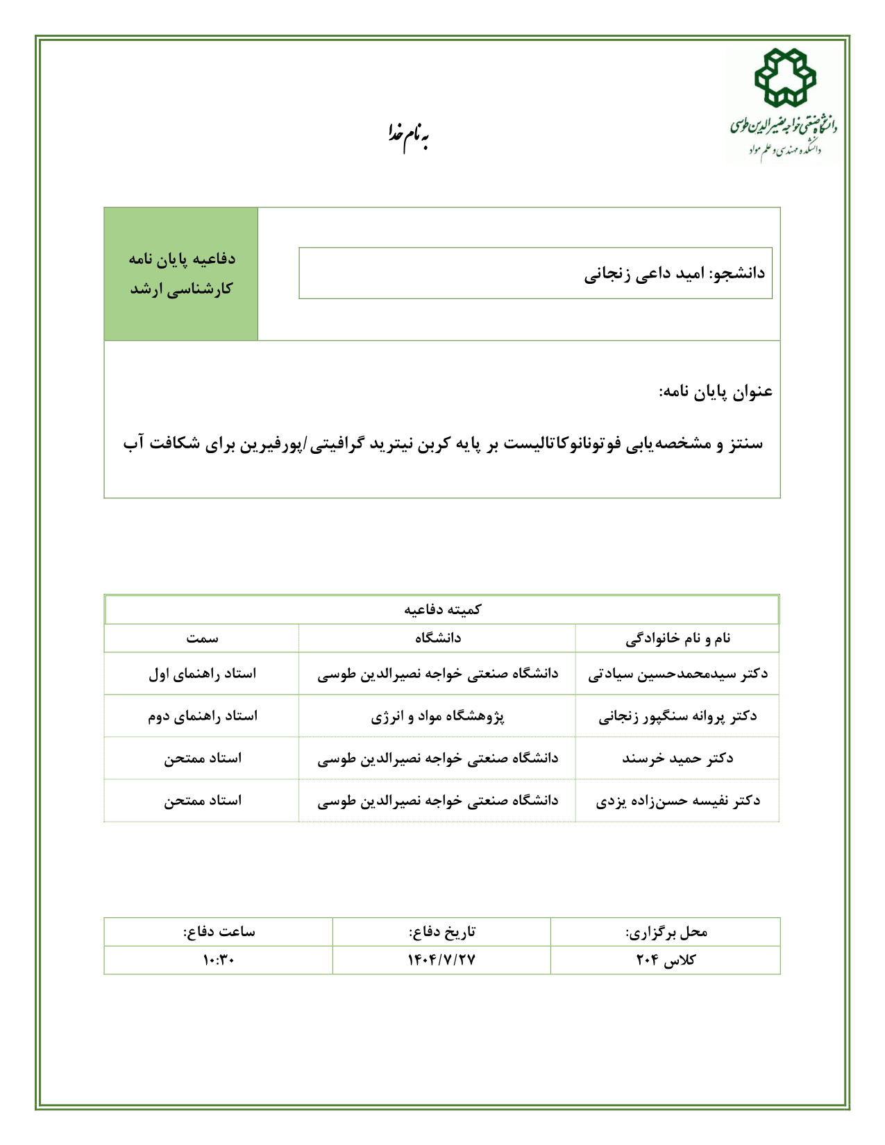 دانشجو: امید داعی زنجانی استاد راهنما: دکتر سیدمحمدحسین سیادتی