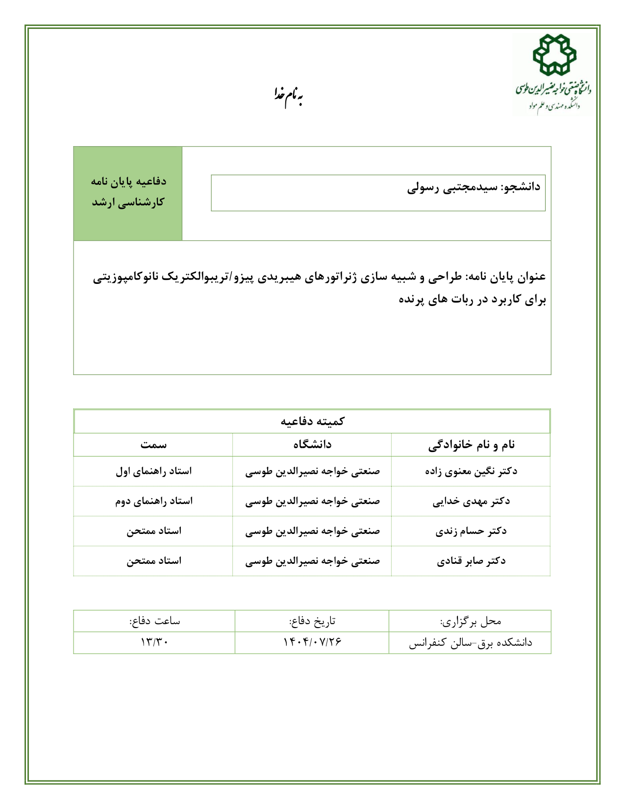 دانشجو: سیدمجتبی رسولی استاد راهنما: دکتر مهدی خدایی - دکتر نگین معنوی زاده