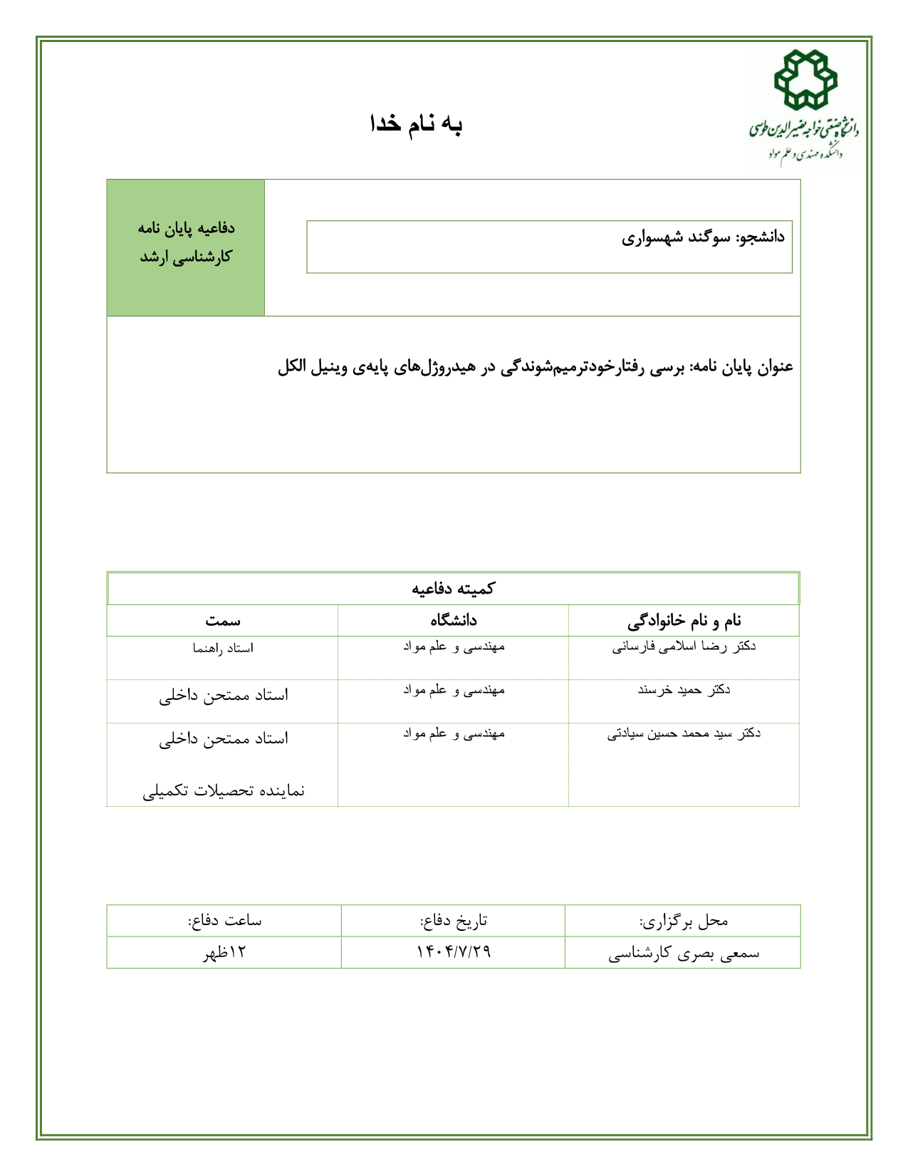 دانشجو: سوگند شهسواری استاد راهنما: دکتر رضا اسلامی فارسانی