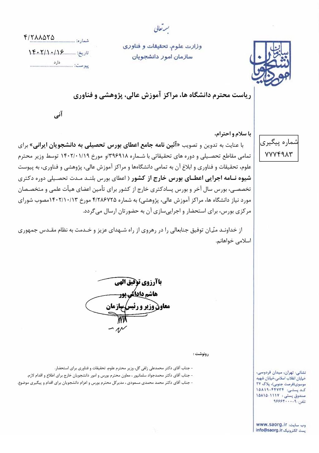 آیین نامه جامع اعطای بورس به دانشجویان ایرانی
