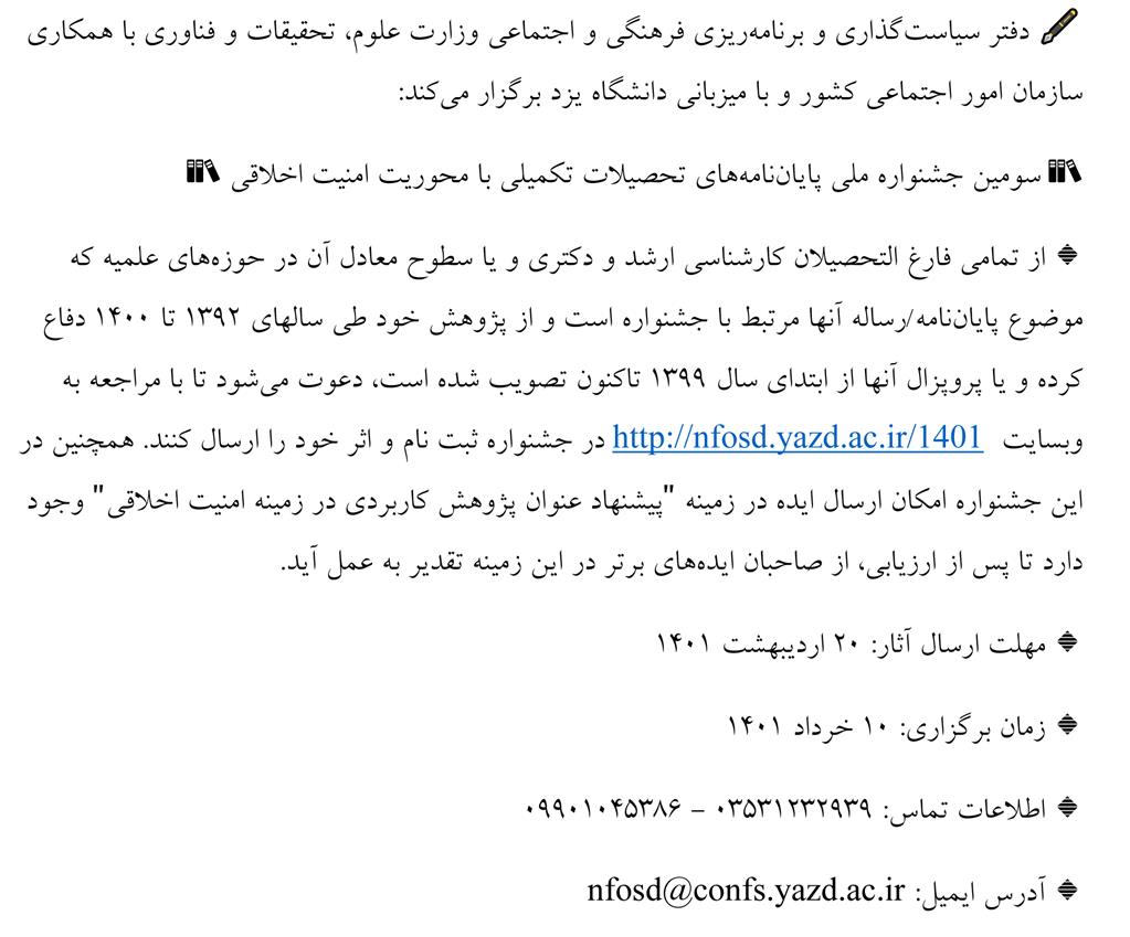 ارسال پوستر و فراخوان جشنواره پایان نامه های دانشجویی
