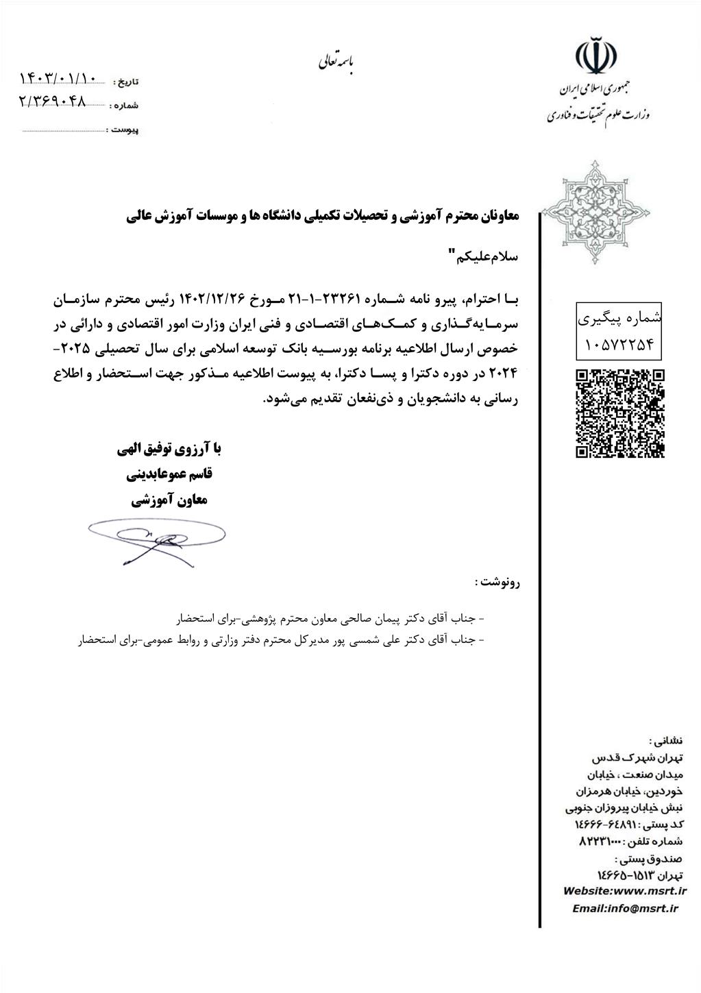 اطلاعیه برنامه بورسیه بانک توسعه اسلامی برای سال تحصیلی 2025/2024