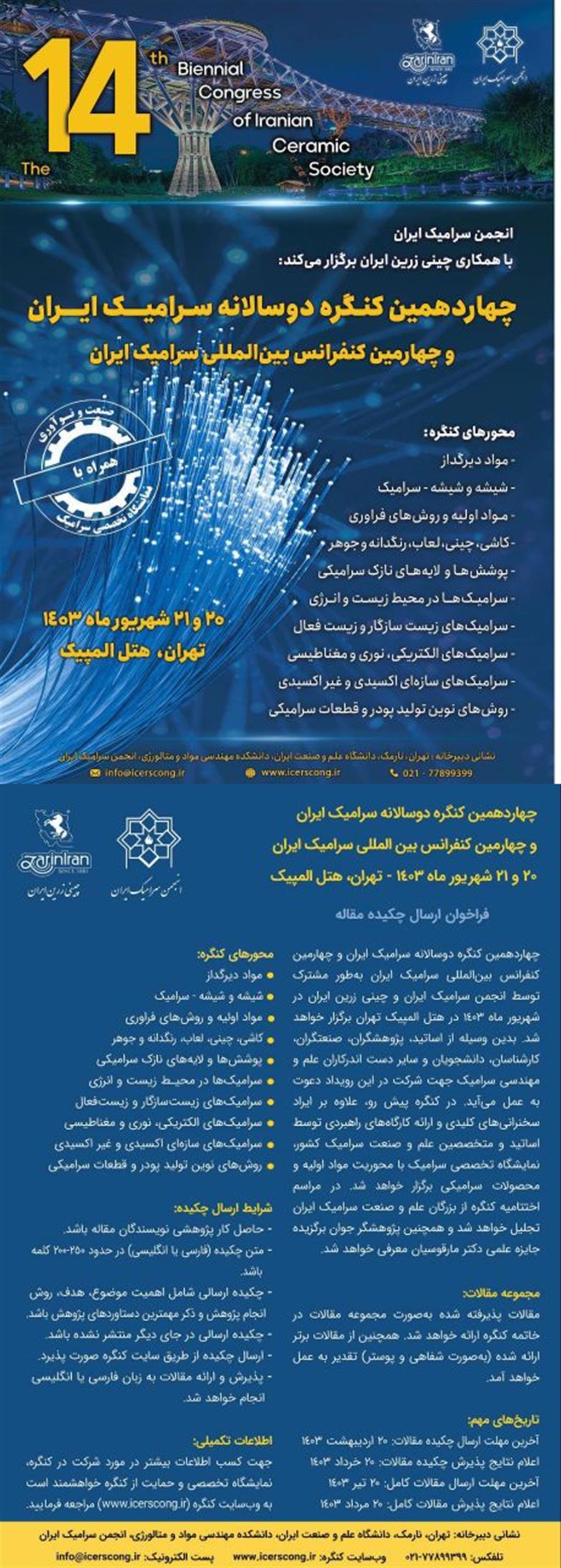 اطلاعیه برگزاری چهارمین کنگره دوسالانه سرامیک ایران و چهارمین کنفرانس بین المللی سرامیک ایران