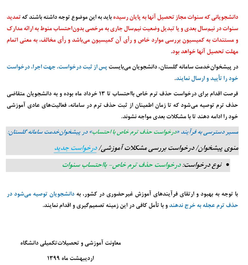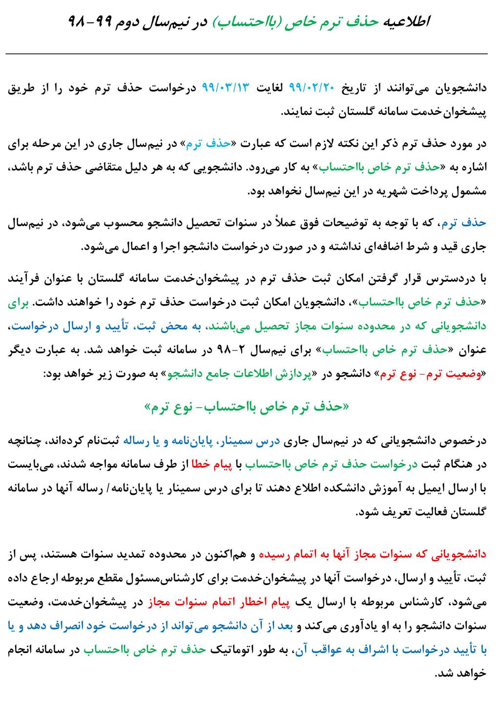 اطلاعیه حذف ترم خاص(با احتساب)در نیم سال 99-98