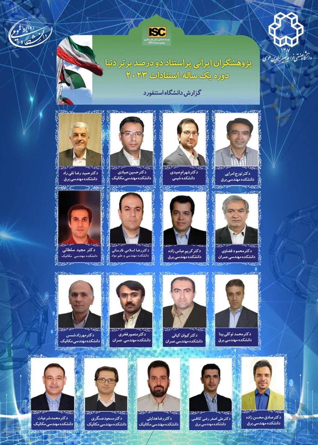 کسب عنوان پژوهشگر برتر پراستناد دودرصد برتر دنیا در سال 2024 بر اساس دوره یکساله استنادات سال 2023 توسط جناب آقای دکتر رضا اسلامی فارسانی عضو محترم هیات علمی دانشکده مهندسی و علم مواد را به ایشان و خانواده بزرگ دانشگاه صنعتی خواجه نصیرالدین طوسی تبریک عرض می نماییم و از خداوند متعال برای ایشان موفقیت روزافزون خواستاریم