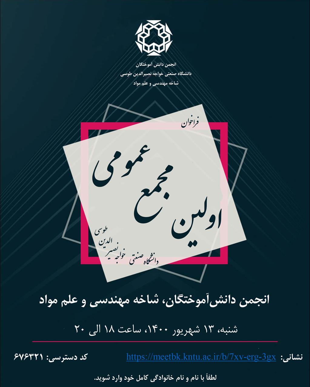 اولین مجمع عمومی انجمن دانش آموختگان دانشگاه صنعتی خواجه نصیرالدین طوسی- شاخه مهندسی و علم مواد - دانشكده مهندسی مواد