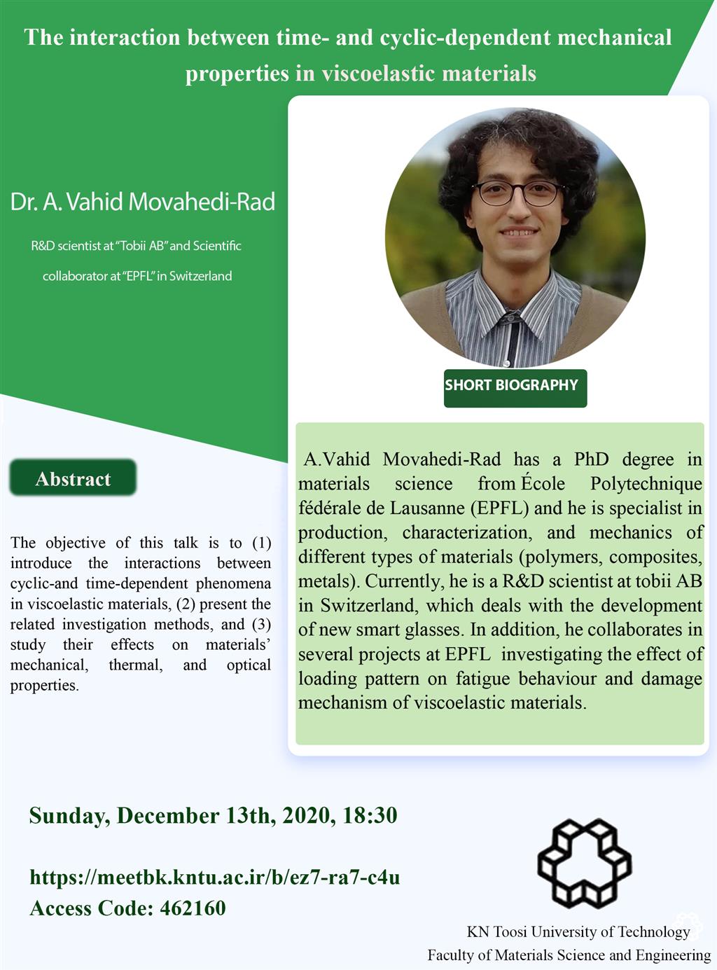 برگزاری وبینار با موضوع مواد ویسکوالاستیک - دانشكده مهندسی مواد