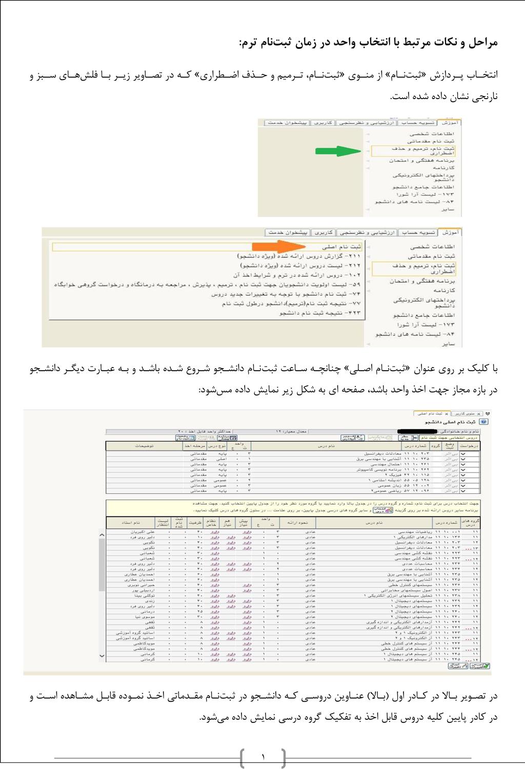 راهنمای اخذ واحد در ثبت نام ترم - دانشكده مهندسی مواد