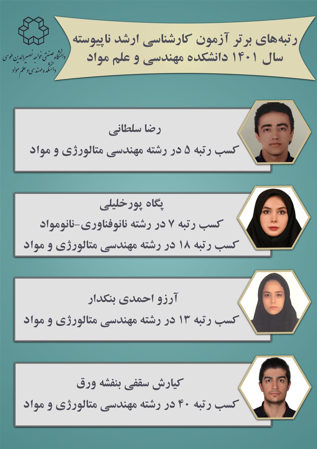 رتبههای برتر آزمون کارشناسی ارشد ناپیوسته سال 1401 دانشکده مهندسی و علم مواد