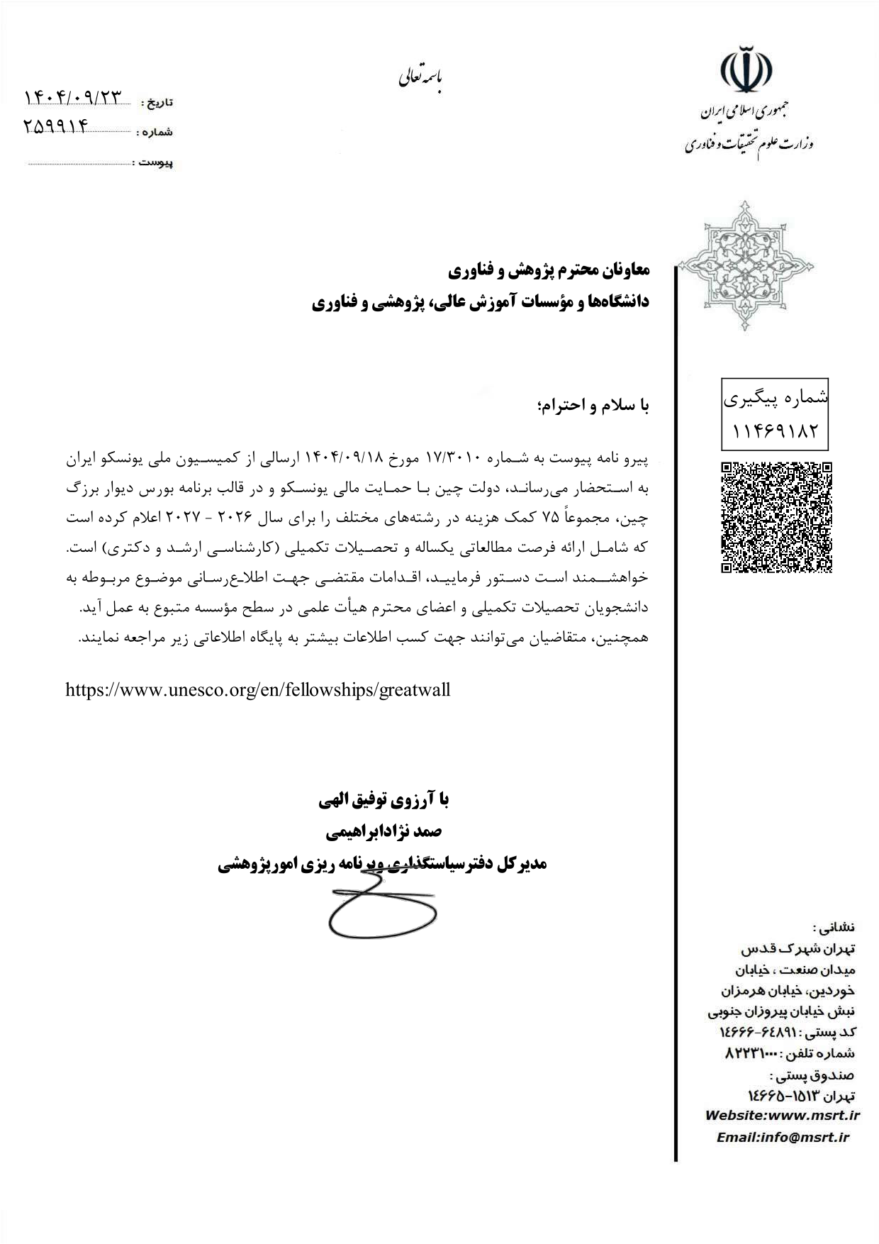فراخوان بورس دیوار بزرگ چین برای سال 2027 ـ 2026