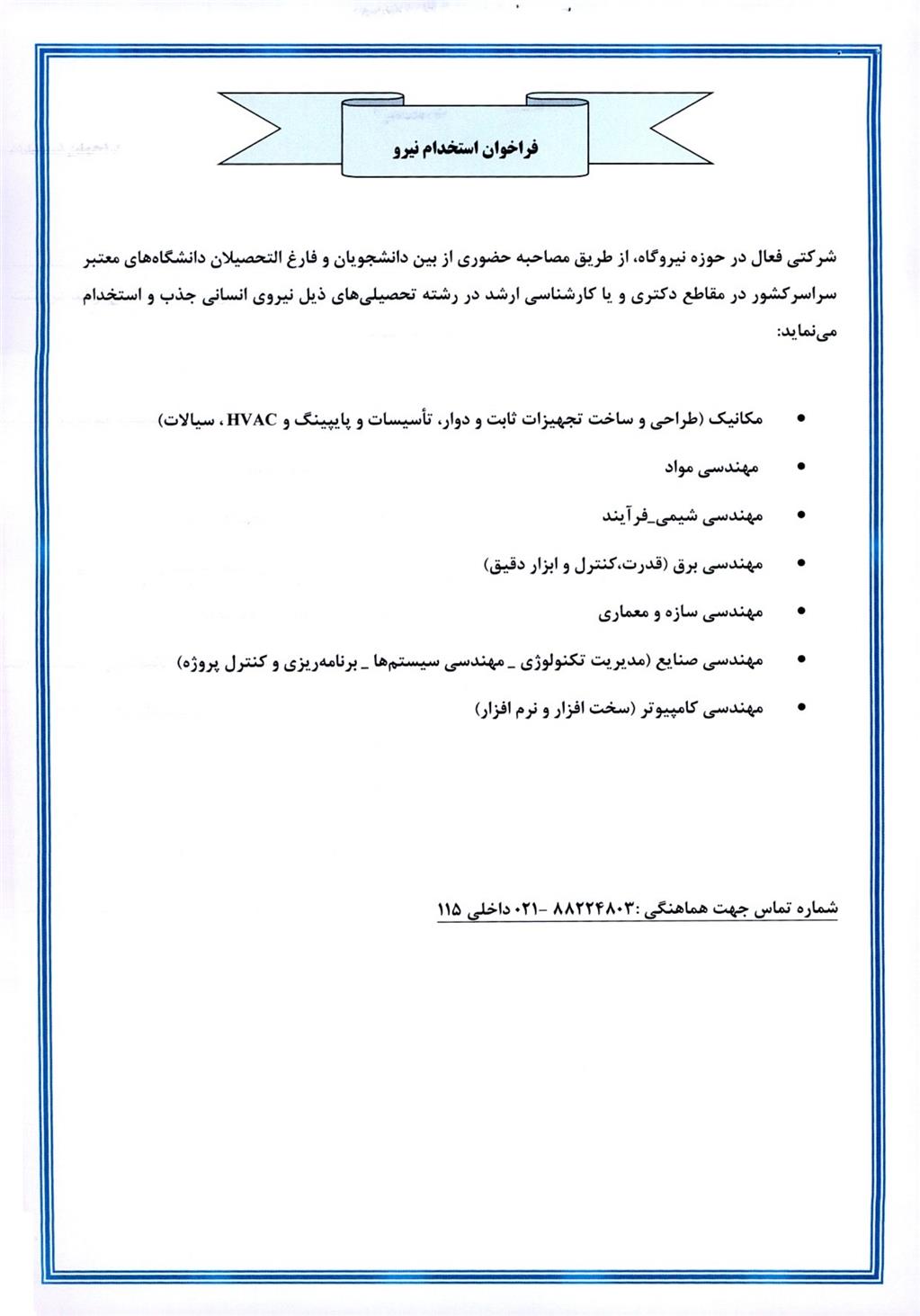 فراخوان جذب نیرو در شرکت توسعه راهکارهای مهندسی نیروگاهی ایران