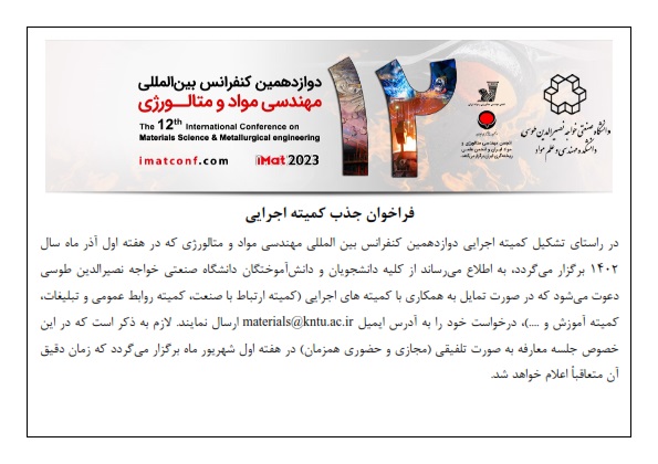 فراخوان جذب کمیته اجرایی دوازدهمین کنفرانس بین المللی مهندسی مواد و متالورژی
