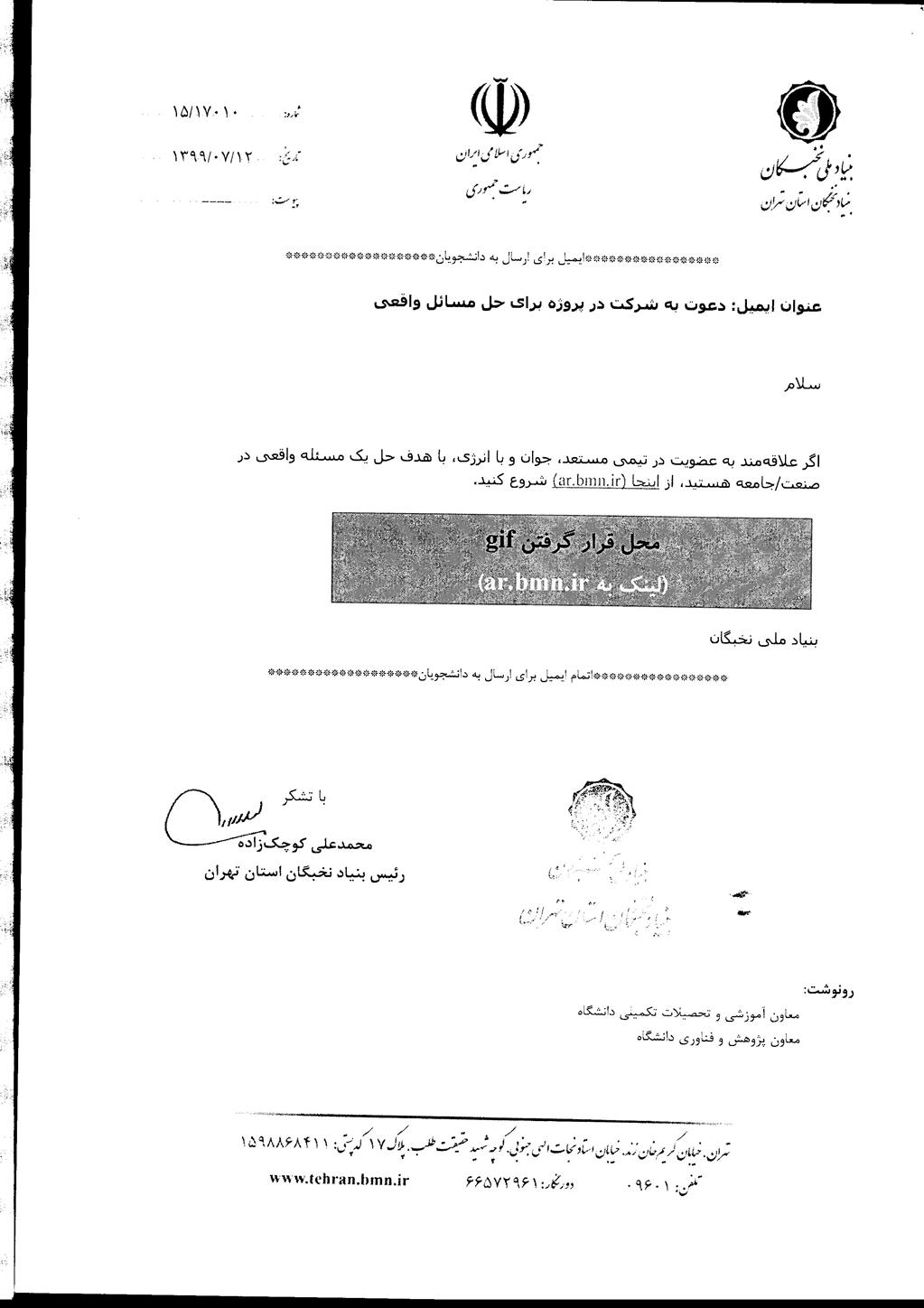 نامه بنیاد در ارتباط با طرح شهید احمدی روشن - دانشكده مهندسی مواد