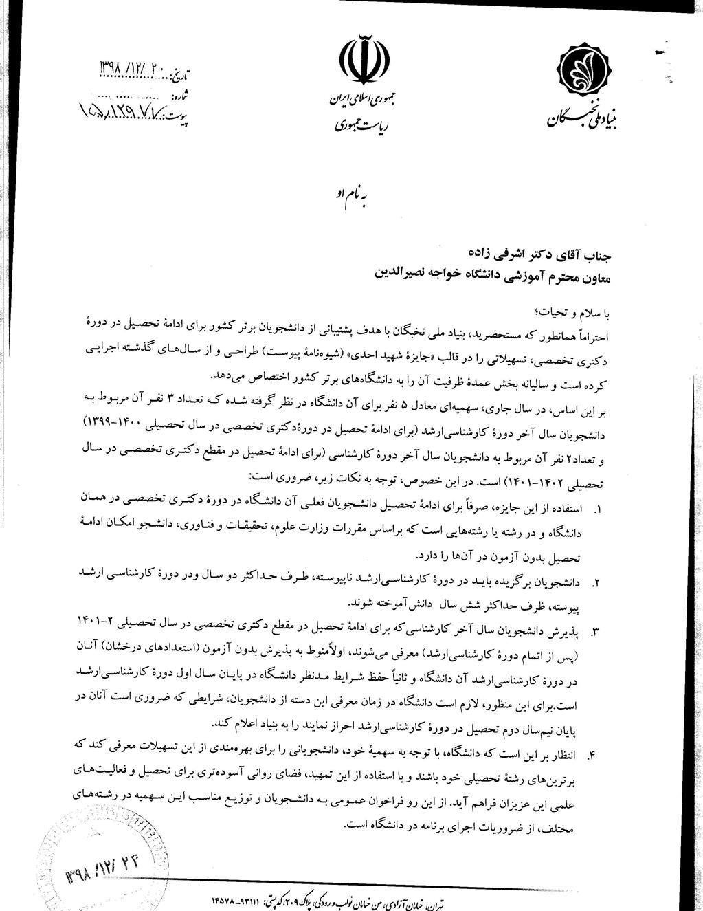 یاد آوری معرفی دانشجو برای سهمیه شهید احدی