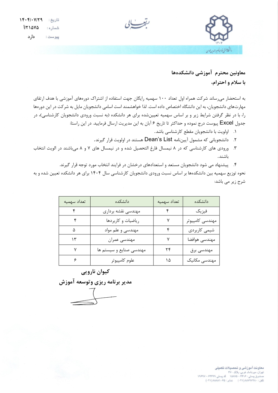 اطلاع رسانی اعلام اسامی دانشجویان برای استفاده از سهمیه رایگان دورههای آموزشی همراه اول
