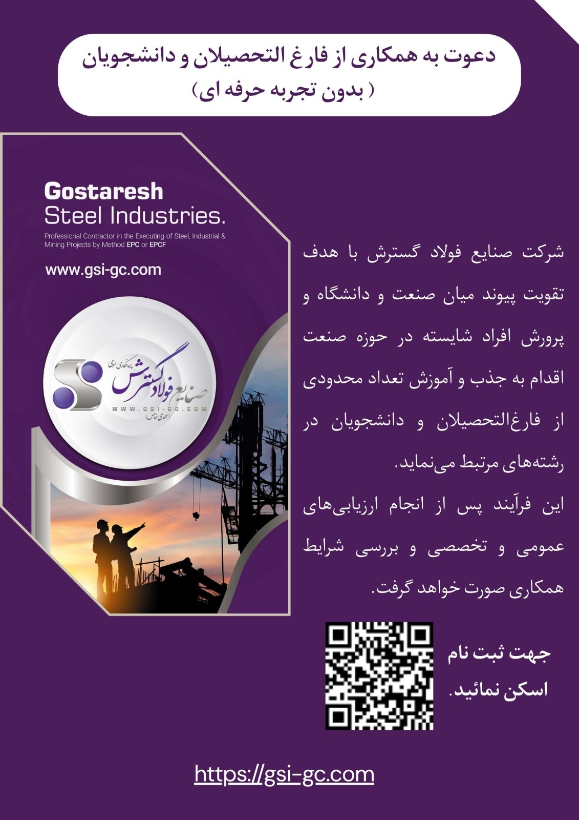 اطلاع رسانی فرصت استخدامی در شرکت فولاد گسترش