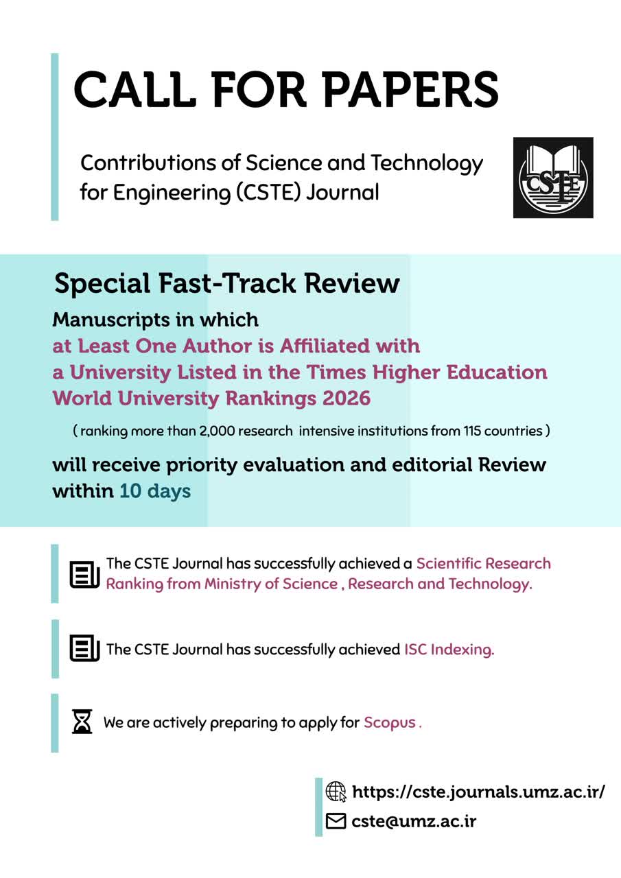 فراخوان پذیرش مقاله نشریه Contributions of Science and Technology for Engineering/به صاحب امتیازی دانشگاه مازندران