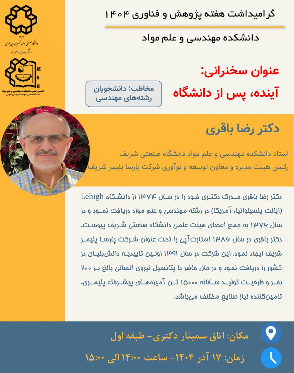 اطلاعرسانی سخنرانی با موضوع آینده، پس از دانشگاه در هفته پژوهش سال 1404