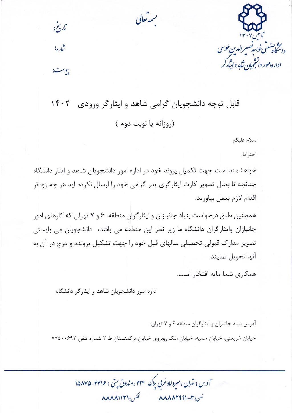 قابل توجه دانشجویان گرامی شاهد و ایثارگر