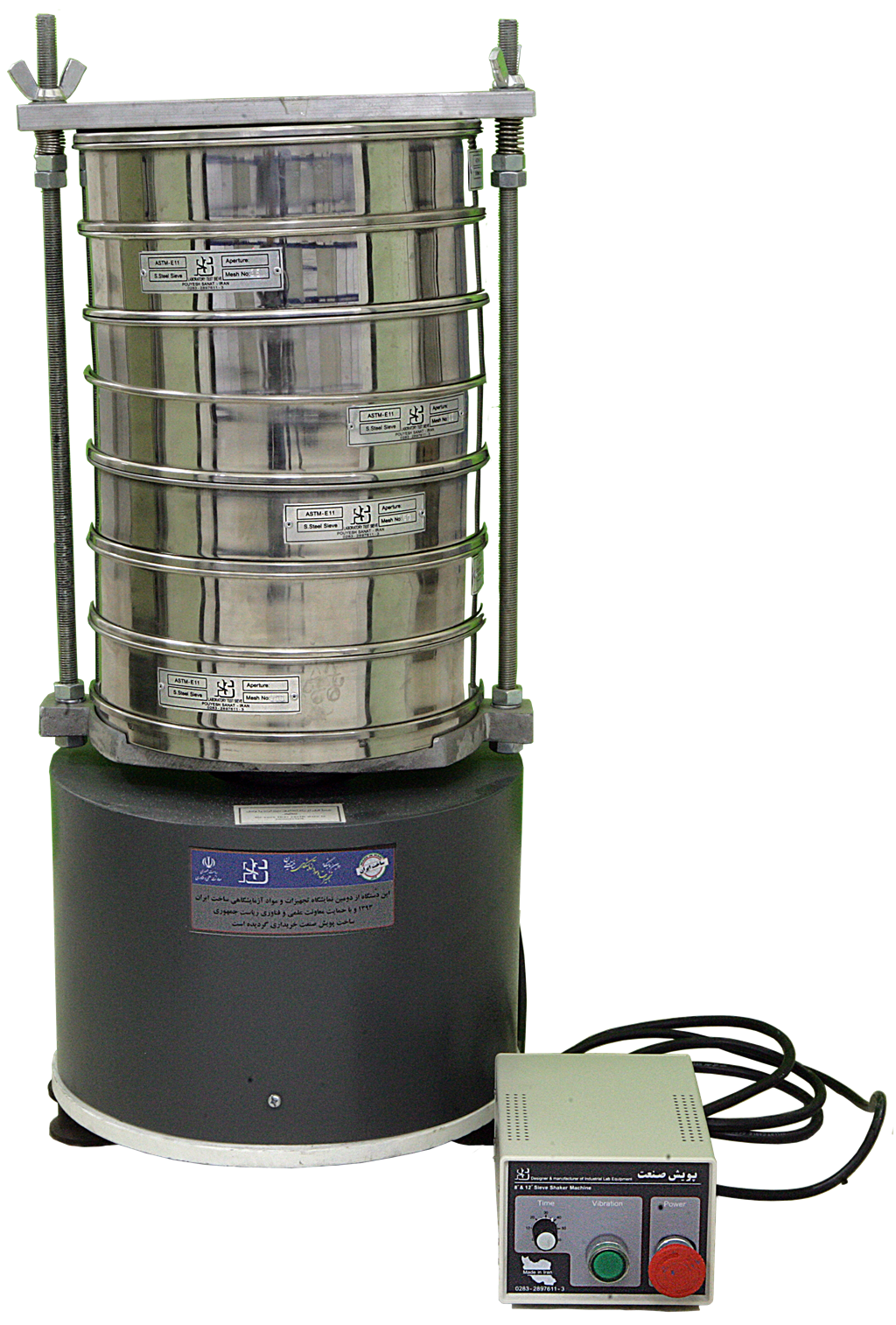 مجهز به 6 الک 12 اینچی با مش 18، 35، 60، 140، 270 و 500 قابلیت تنظیم زمان کارکرد دستگاه |