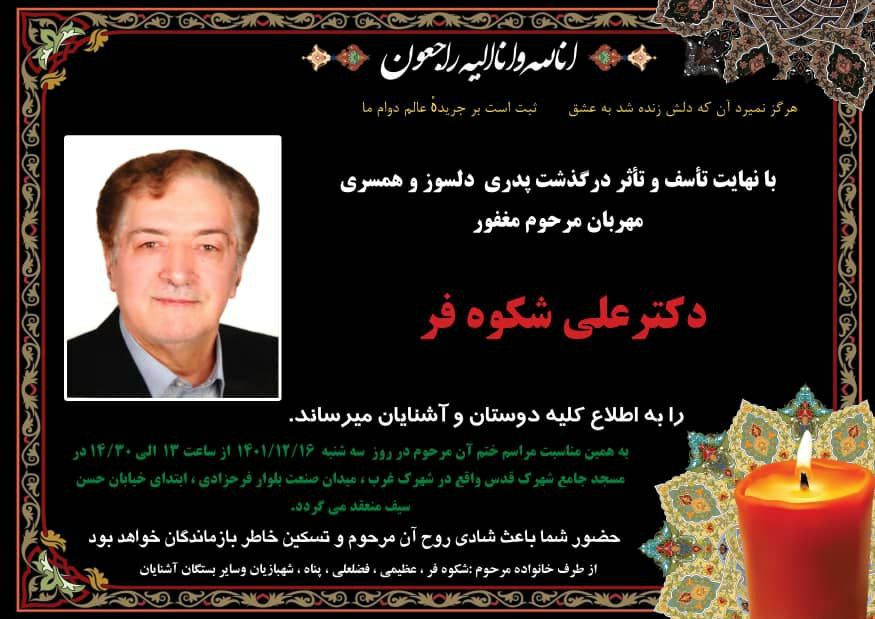 مجلس ترحیم زنده یاد آقای دکتر شکوه فر