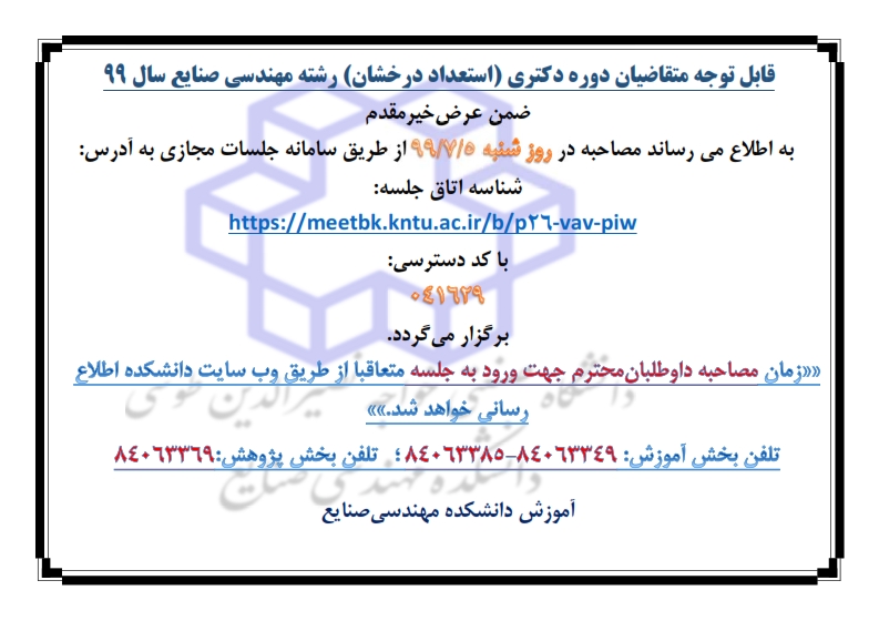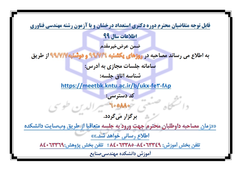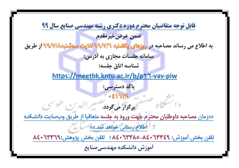 اطلاعیه مصاحبه دکتری سال 1399 - آموزش صنایع