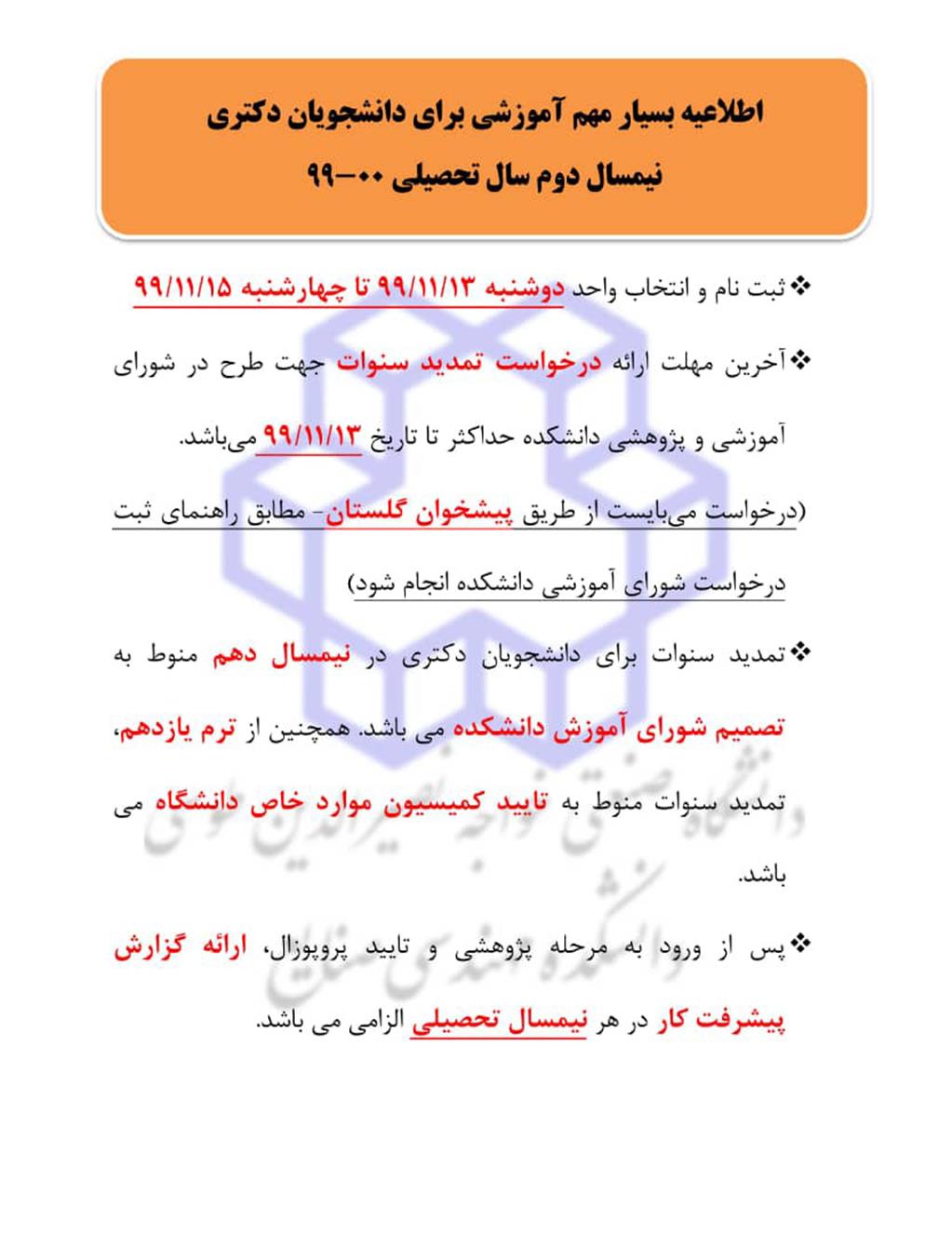 اطلاعیه مهم در زمینه ثبت نام و تمدید سنوات- دانشجویان دکتری - آموزش صنایع