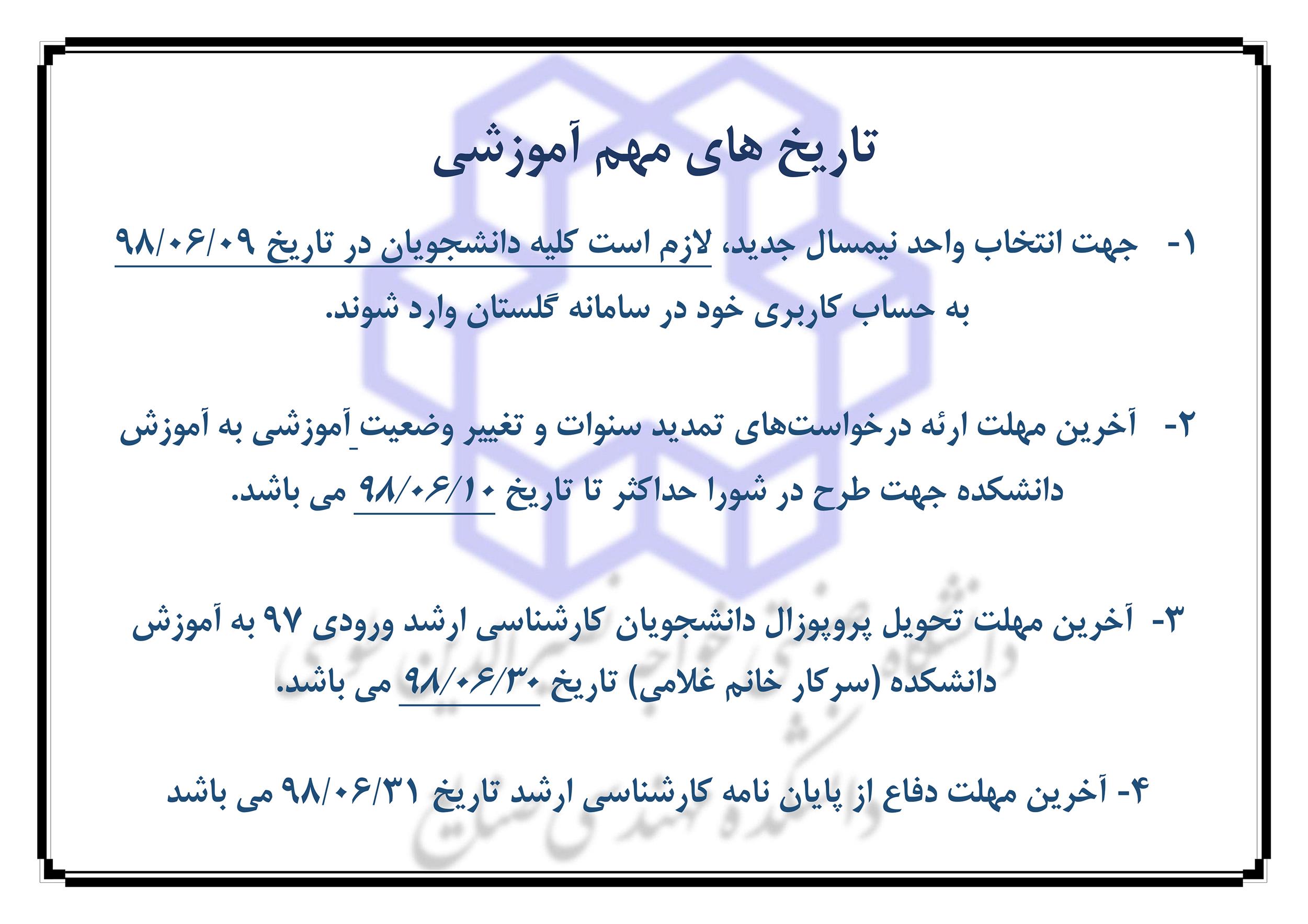 تاريخ هاي مهم آموزشي - آموزش صنایع