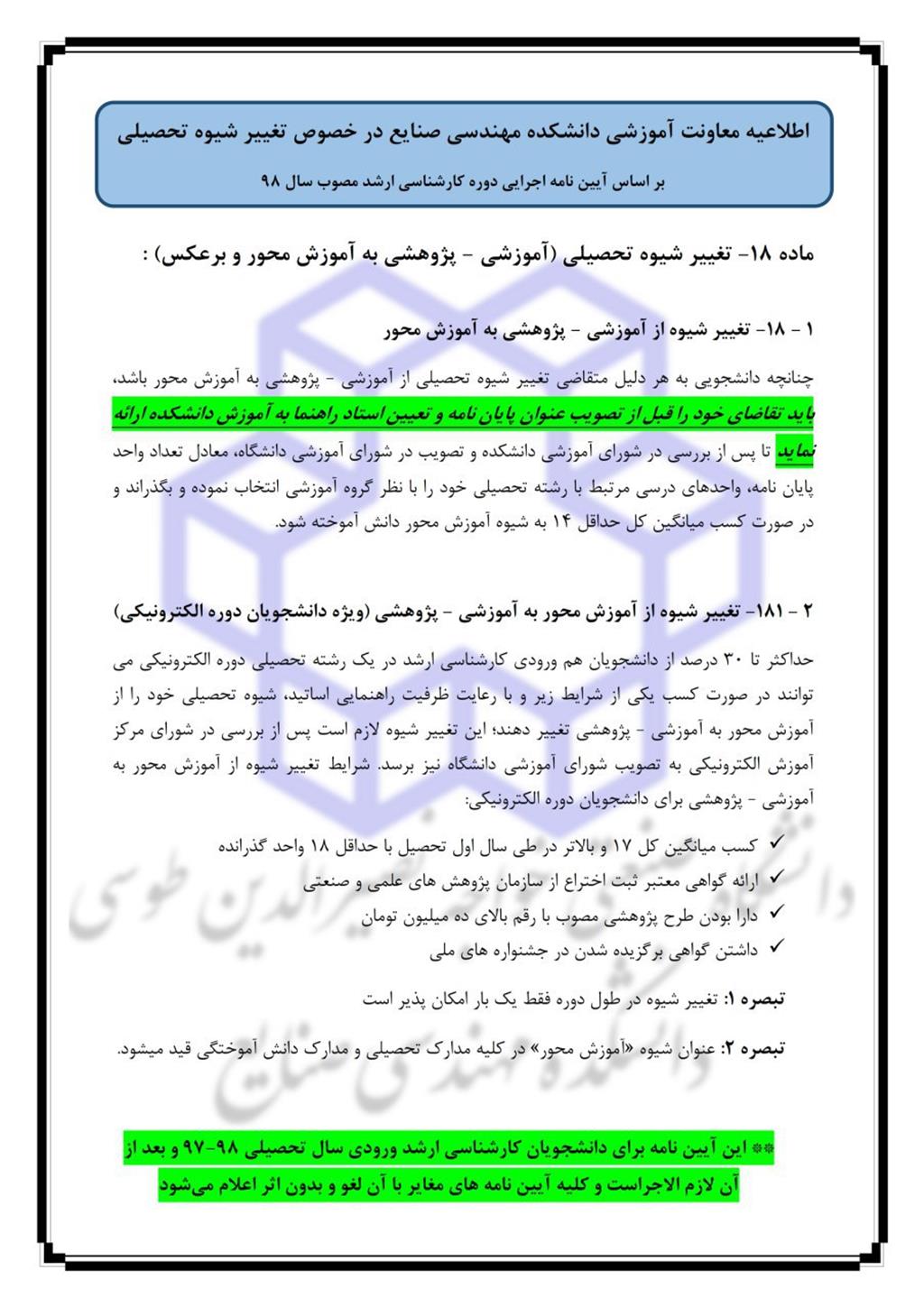 تغییر شیوه تحصیلی (آموزشی-پژوهشی به آموزش محور و برعکس) - آموزش صنایع