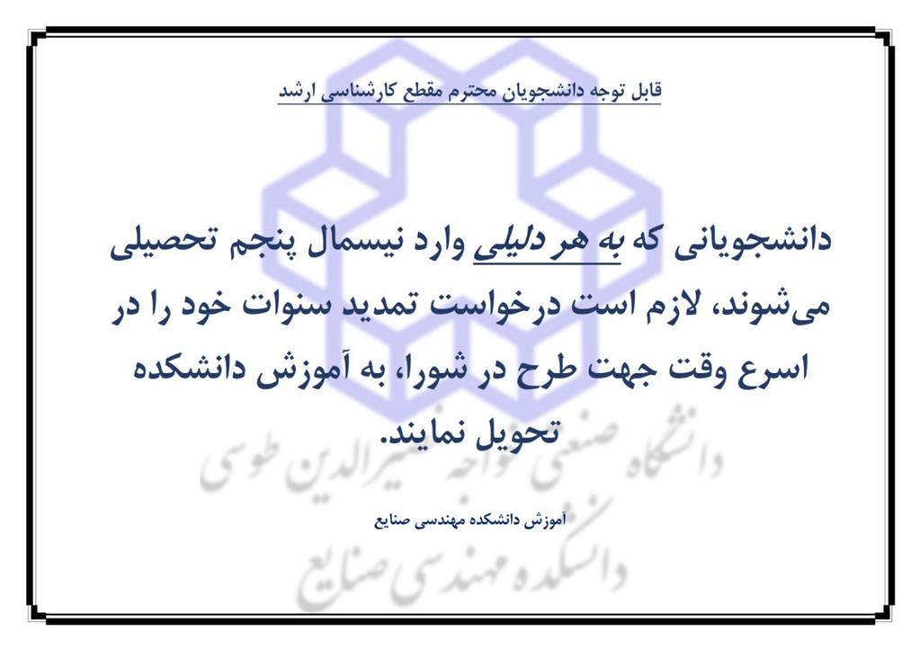 تمدید سنوات دانشجویان مقطع کارشناسی ارشد - آموزش صنایع