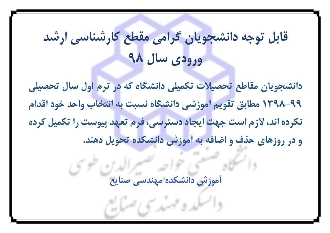 قابل توجه دانشجويان مقطع كارشناسي ارشد ورودي 98