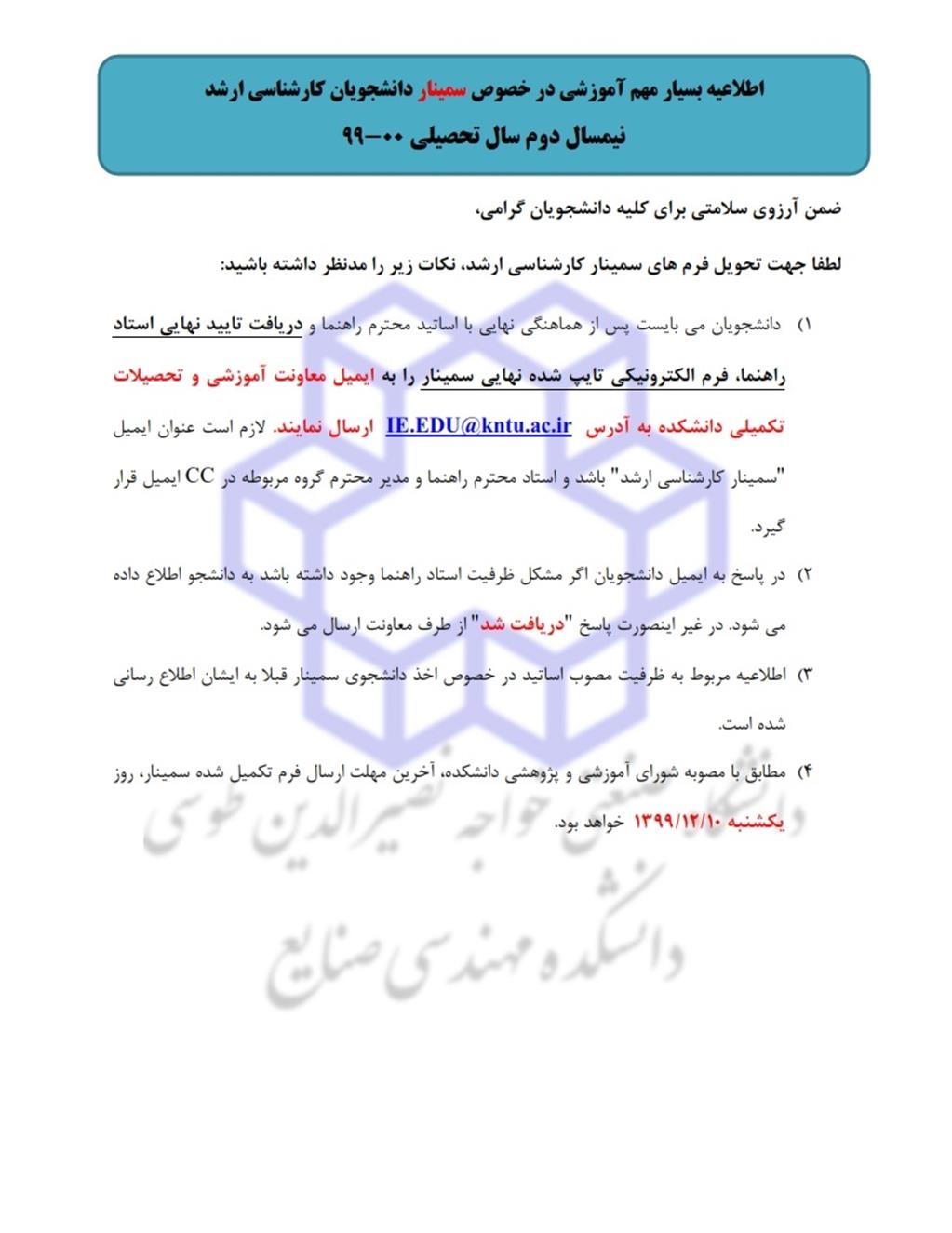 قابل توجه دانشجویان محترم کارشناسی ارشد در خصوص سمینار