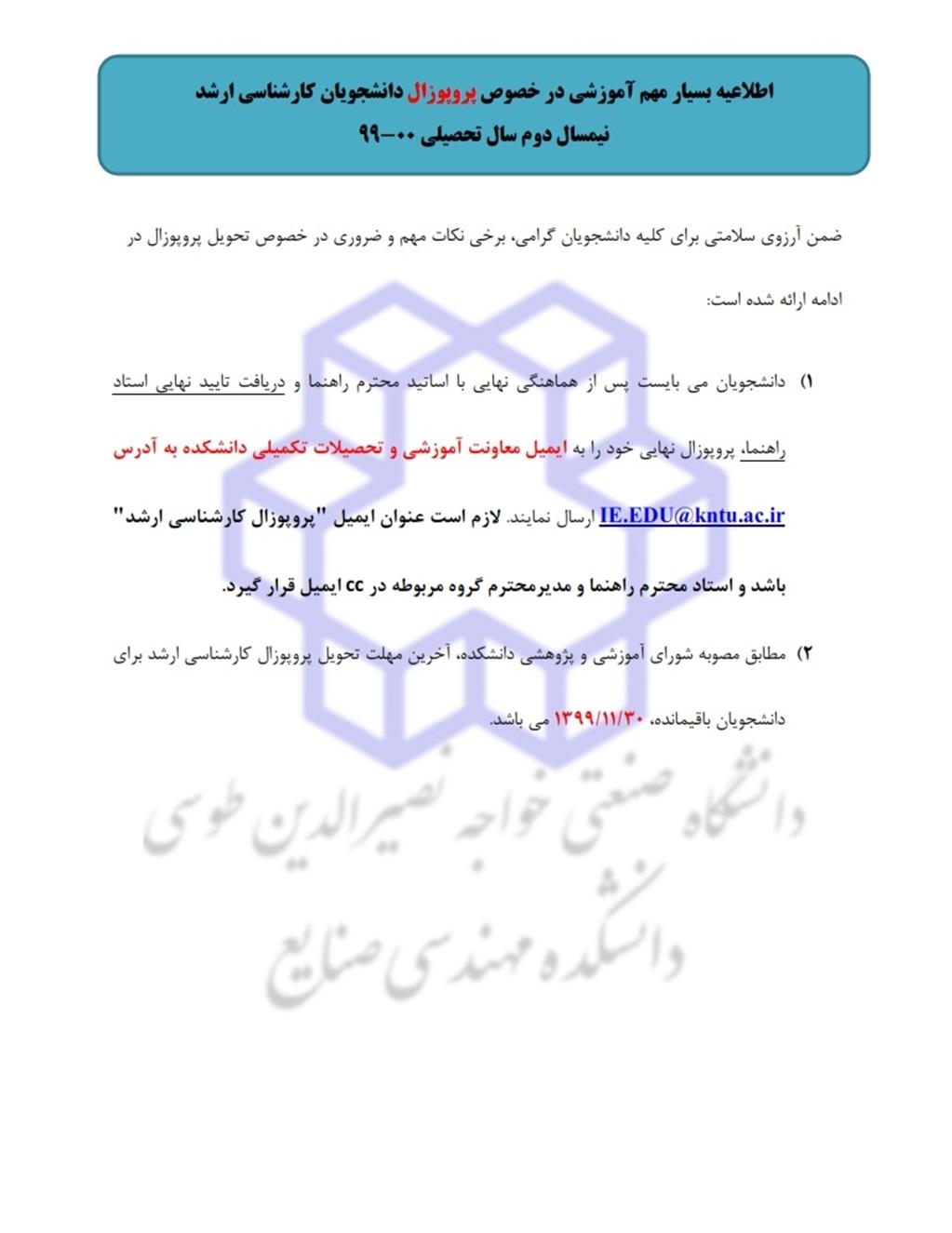 قابل توجه دانشجویان محترم کارشناسی ارشد در خصوص پروپوزال - آموزش صنایع