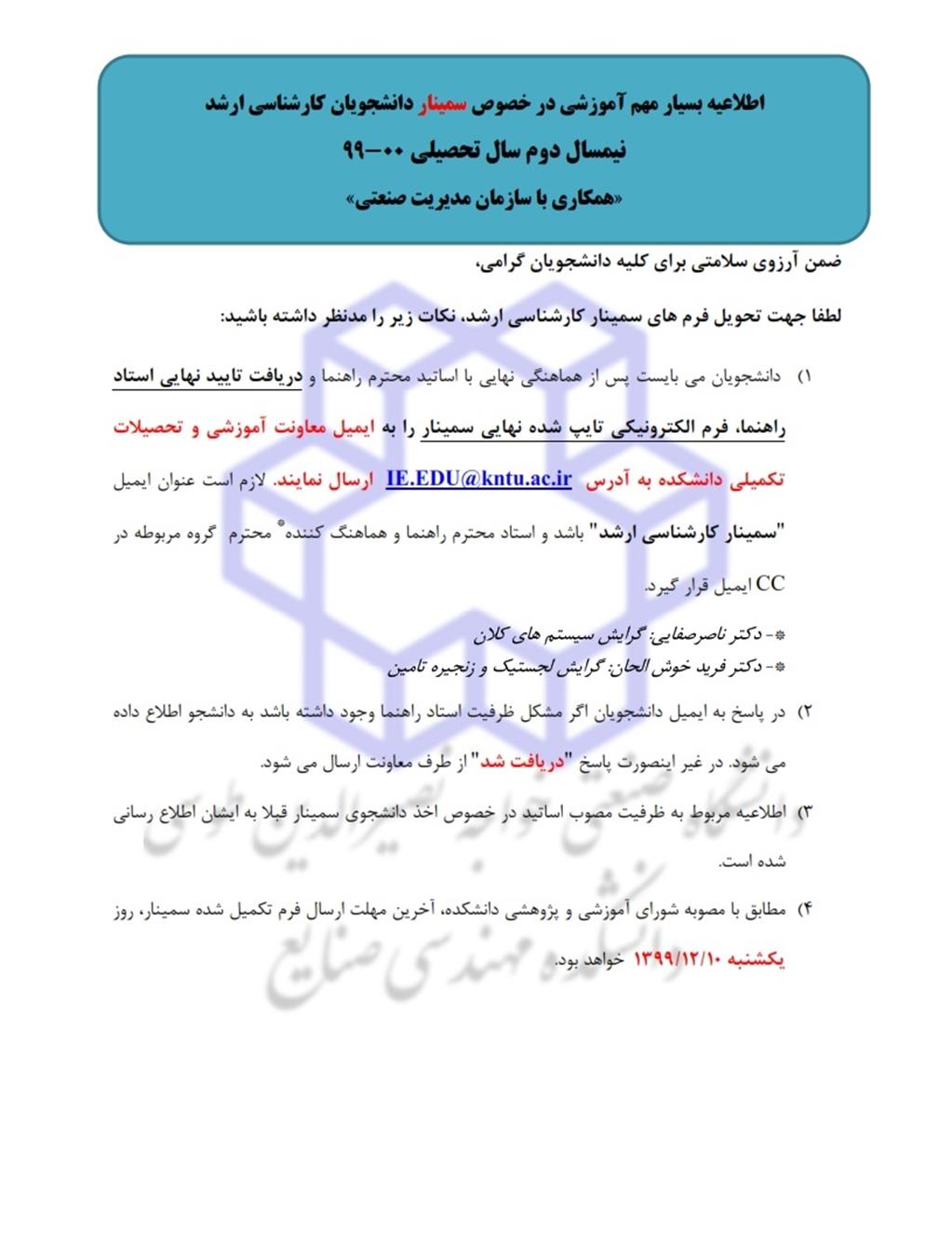 قابل توجه دانشجویان محترم کارشناسی ارشد "همکاری با سازمان مدیریت صنعتی" در خصوص سمینار