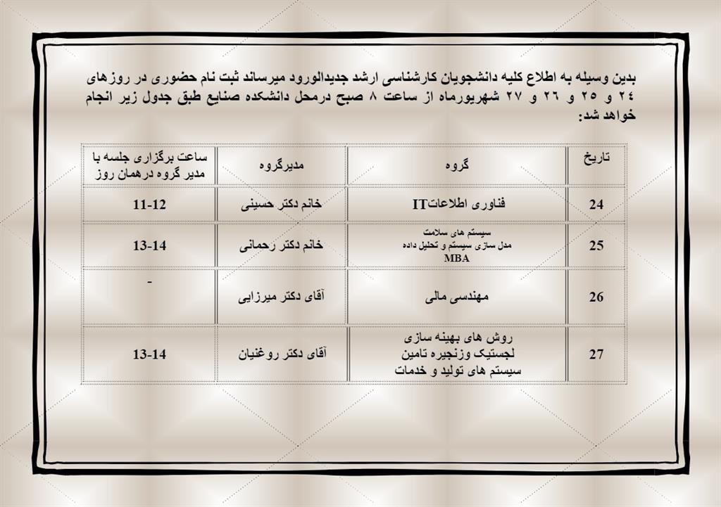 قابل توجه دانشجویان کارشناسی ارشد دانشکده مهندسی صنایع ورودی سال 1403