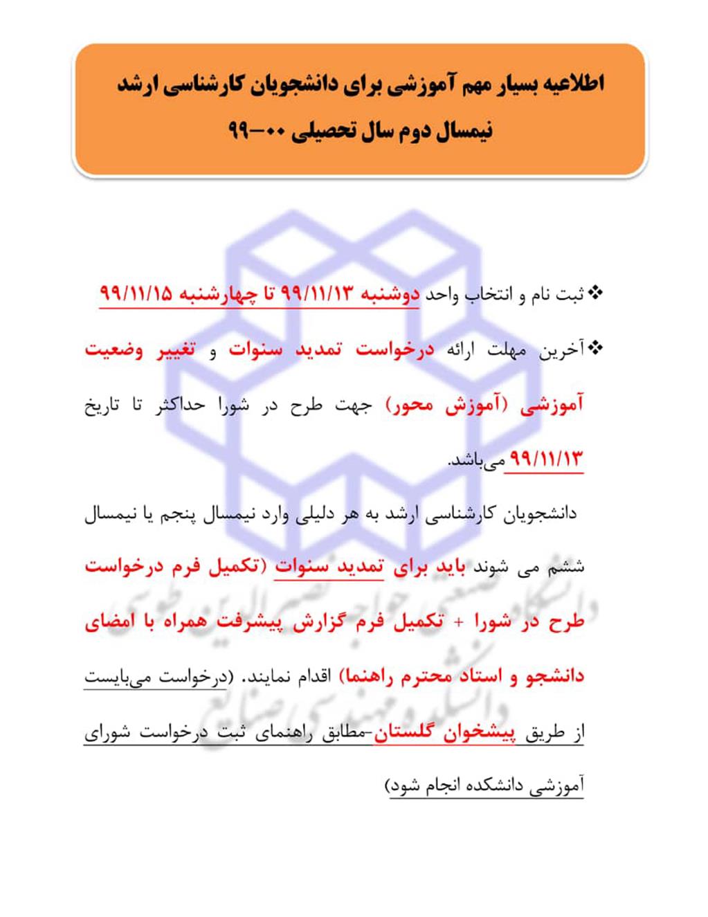 اطلاعیه مهم در زمینه ثبت نام، تمدید سنوات و تغییر وضعیت - کارشناسی ارشد