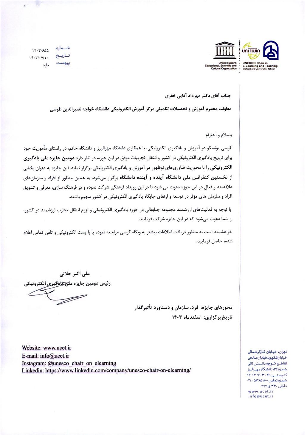 دعوت نامه شرکت در نخستین کنفرانس ملی دانشگاه آینده و آینده دانشگاه