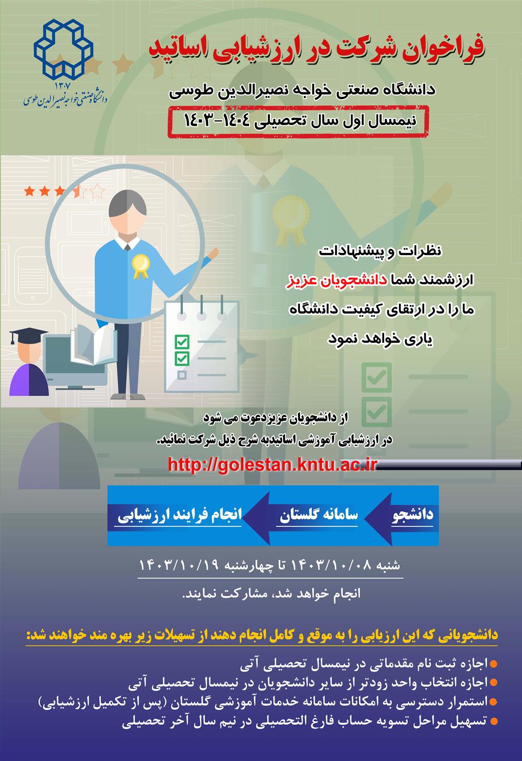 فراخوان شرکت در ارزشیابی اساتید نیم سال اول سال تحصیلی ۱۴۰۴-۱۴۰۳