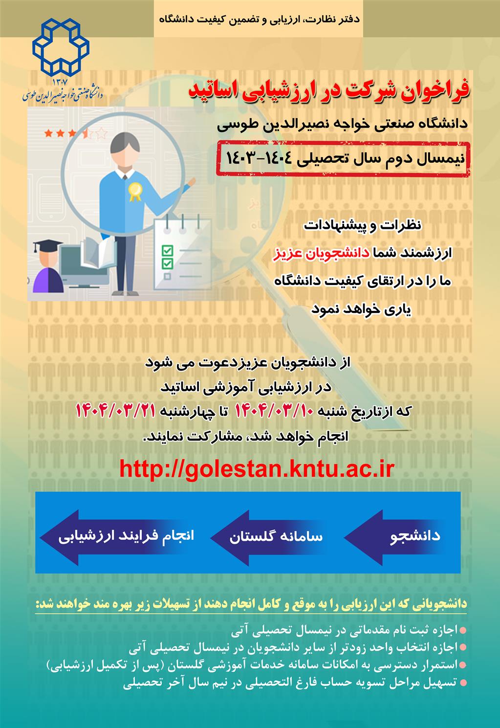 فراخوان شرکت در ارزشیابی اساتید نیم سال تحصیلی ۱۴۰۴-۱۴۰۳