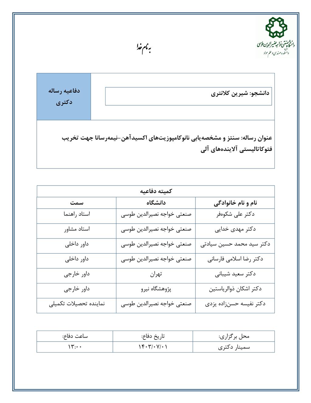 دانشجو: شیرین کلانتری استاد راهنما: دکتر مهدی خدایی