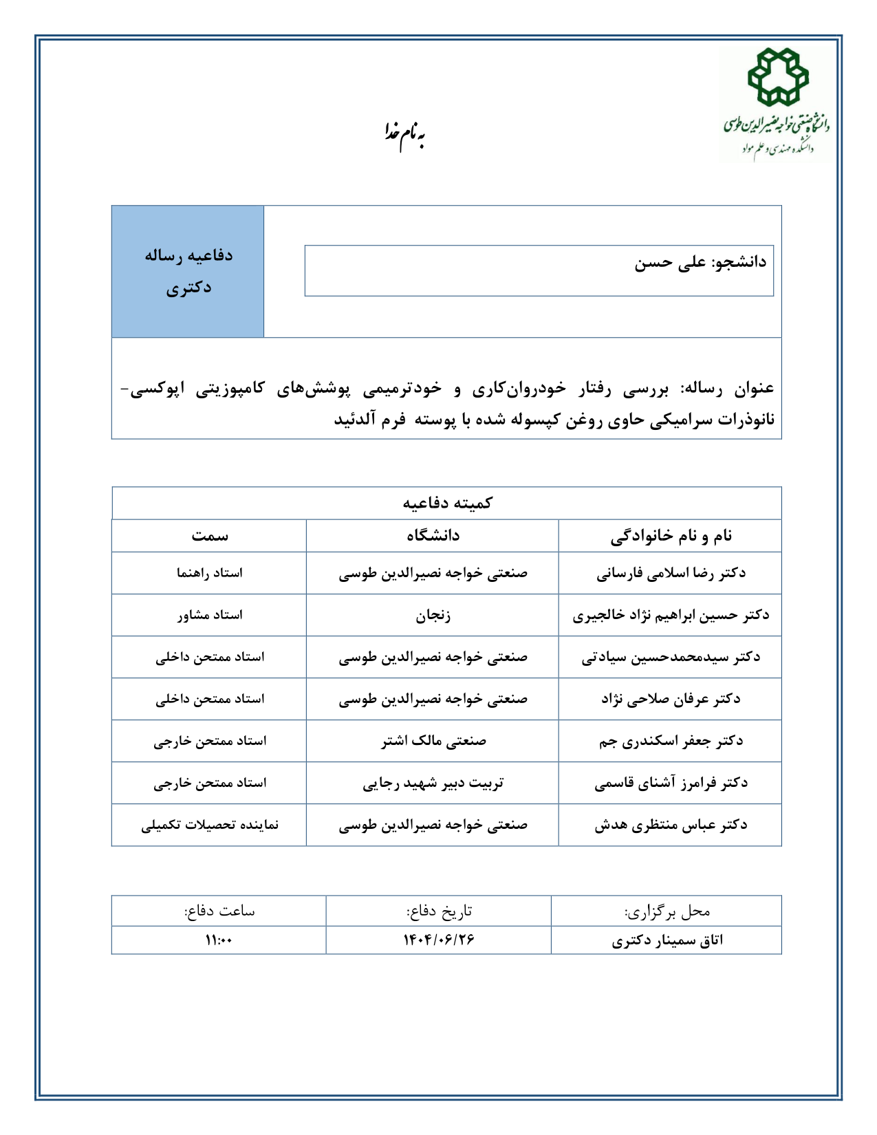 دانشجو: علی حسن استاد راهنما: دکتر رضا اسلامی فارسانی