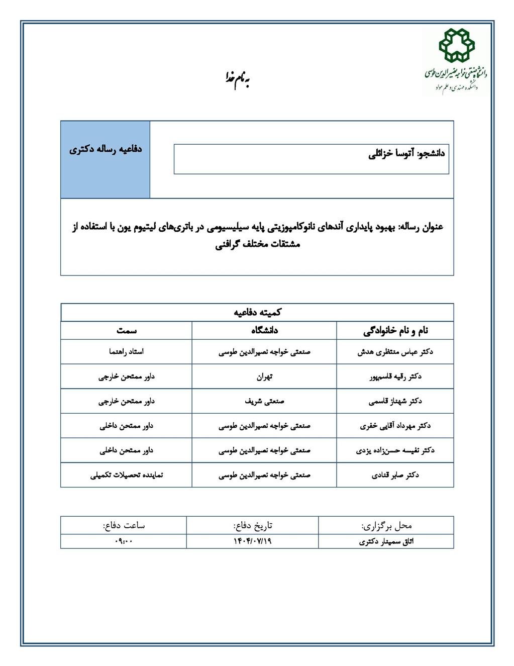 دانشجو: آتوسا خزائلی استاد راهنما: دکتر عباس منتظری هدش