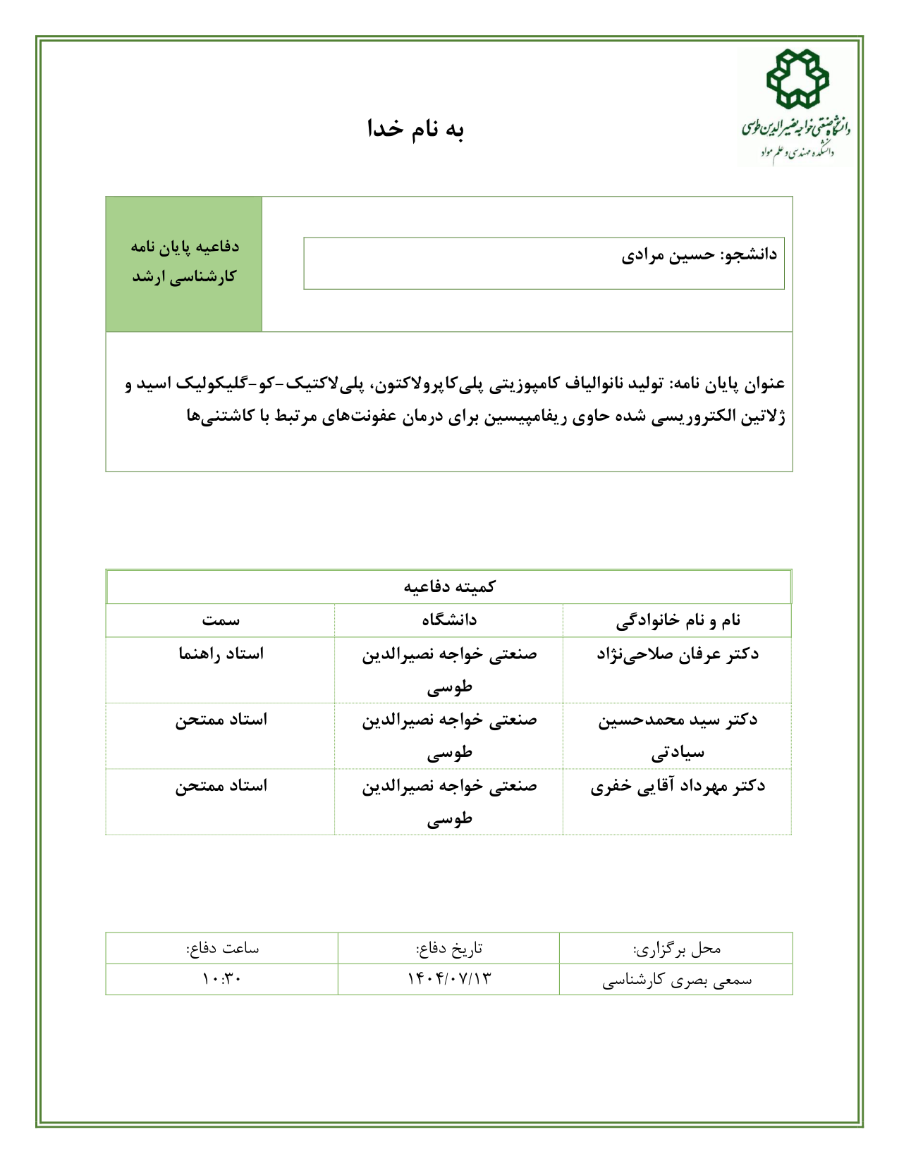 دانشجو: حسین مرادی استاد راهنما: دکتر عرفان صلاحی نژاد